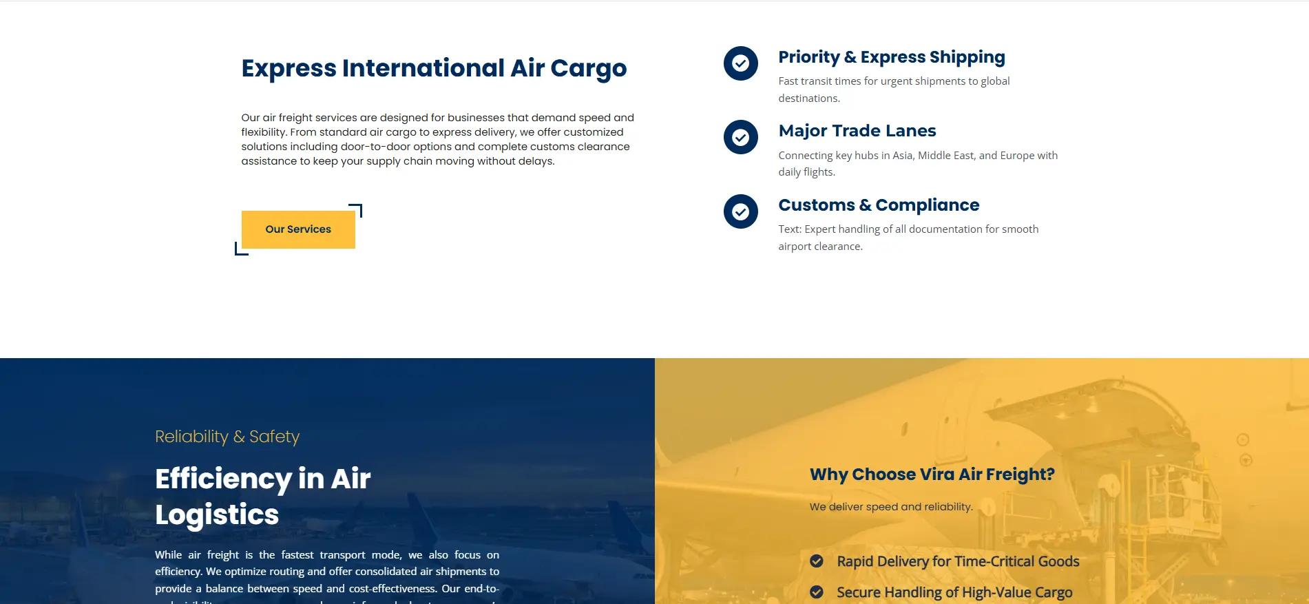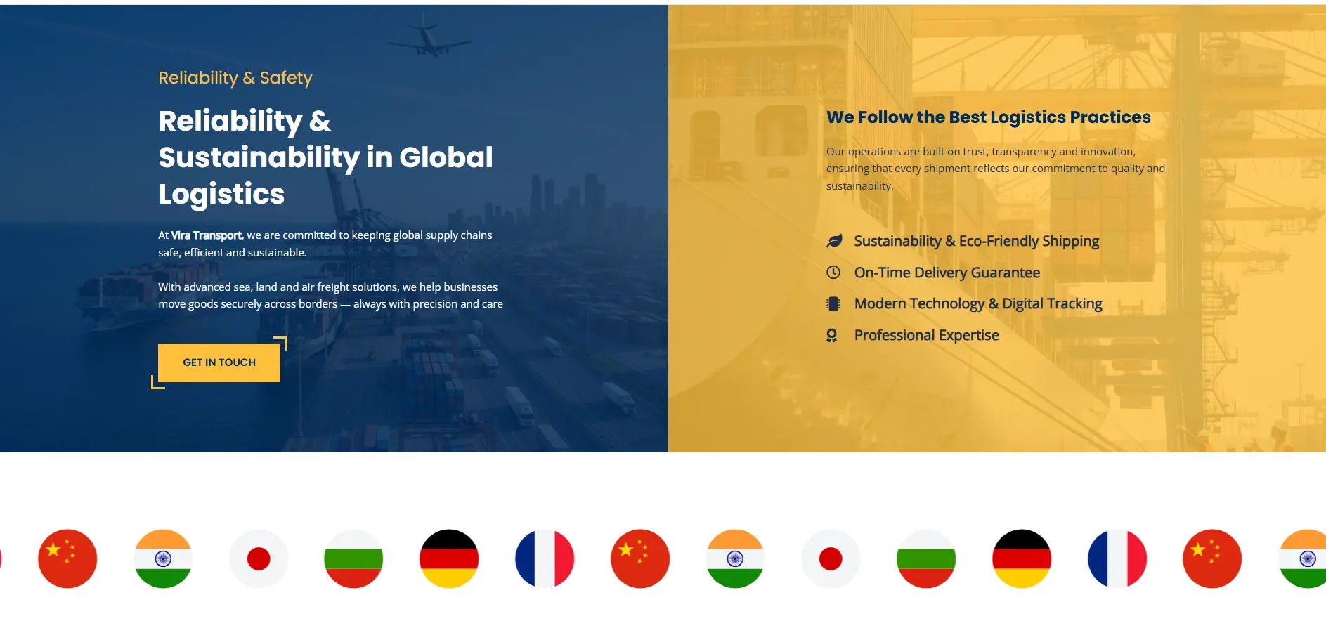 The Vira Transportation website was designed with a modern, structured, and user-focused approach to reflect the company’s expertise in international freight and logistics. The design follows professional UI/UX principles, using a clean layout, strategic color harmony, and high-quality visual elements to communicate reliability and global reach. Carefully selected professional imagery related to sea, land, and air transportation reinforces the brand’s credibility, while the clear content structure ensures seamless information delivery for corporate audiences.